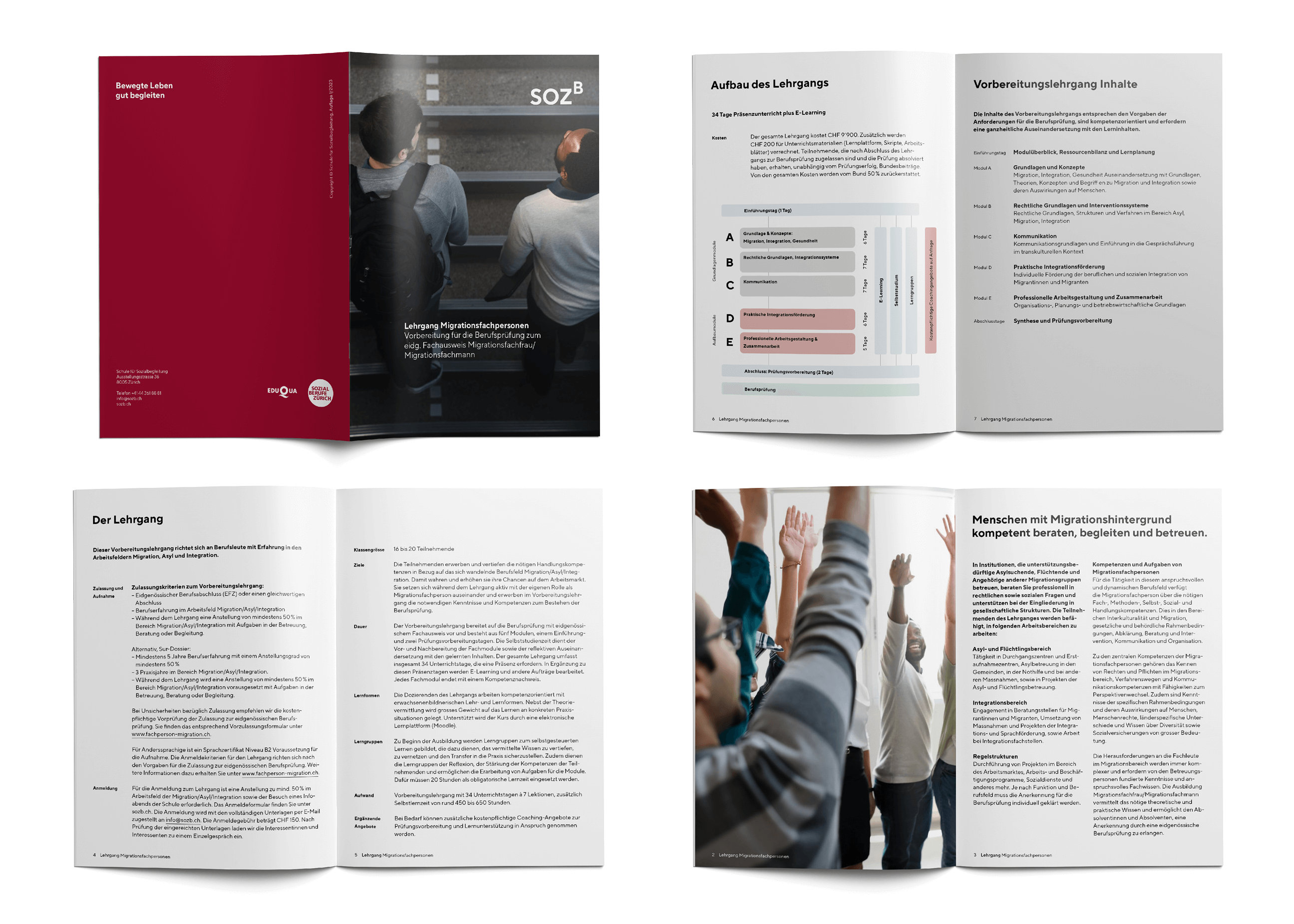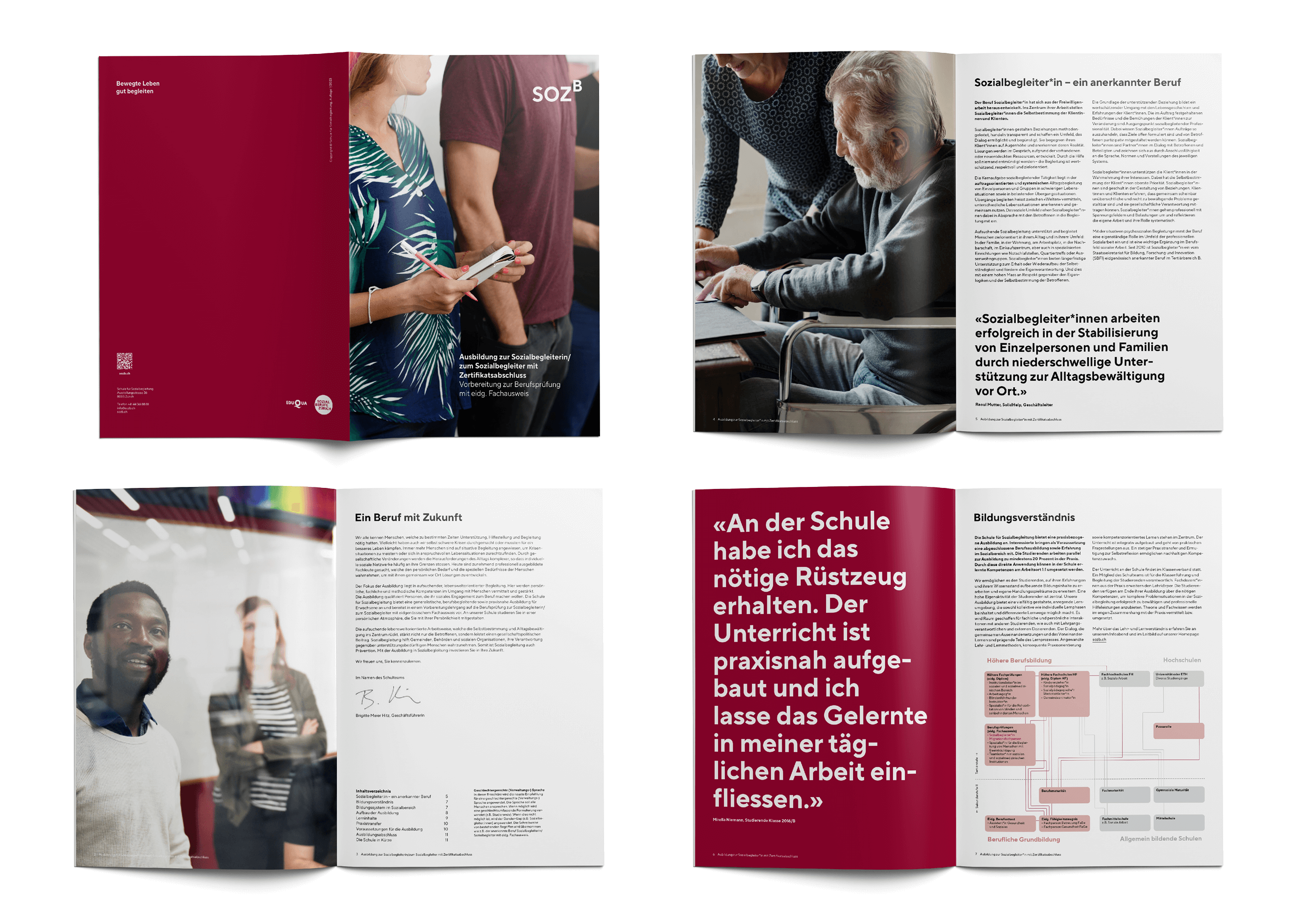 We developed a new brand design and with the new claim we bring the benefits of the in-service education offers to a simple and clear denominator. We reduced the bulky name of the school to the abbreviation SOZB. The superscript B in the logo emphasizes the accompaniment and at the same time the affiliation of the training programs in the tertiary level of the Swiss education system. The distinctive visual language and color scheme complement the design and give the school a modern and contemporary look.